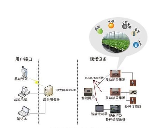 蔬菜生產(chǎn)中,溫室生產(chǎn)規(guī)模正在逐步擴(kuò)大,傳統(tǒng)溫室監(jiān)控系統(tǒng)成本高,移動(dòng)性差等問(wèn)題很突出。近年來(lái),節(jié)能高效的WSN技術(shù)正在溫室監(jiān)控領(lǐng)域興起?;?/span>WSN的溫度監(jiān)控系統(tǒng)由匯聚節(jié)點(diǎn)和子節(jié)點(diǎn)構(gòu)成。將傳感器分布在溫室中監(jiān)控溫室內(nèi)土壤溫度、濕度、PH值、光照強(qiáng)度等,通過(guò)無(wú)線網(wǎng)絡(luò)傳到匯聚結(jié)點(diǎn),匯聚結(jié)點(diǎn)對(duì)數(shù)據(jù)進(jìn)行處理,將命令通過(guò)無(wú)線網(wǎng)絡(luò)下發(fā)給調(diào)控節(jié)點(diǎn),調(diào)控節(jié)點(diǎn)根據(jù)所得命令對(duì)灌溉設(shè)備、加熱器等進(jìn)行控制,改變溫室條件。匯聚節(jié)點(diǎn)還可接受人工控制,與互聯(lián)網(wǎng)連接,使用戶可以進(jìn)行遠(yuǎn)程監(jiān)控。
